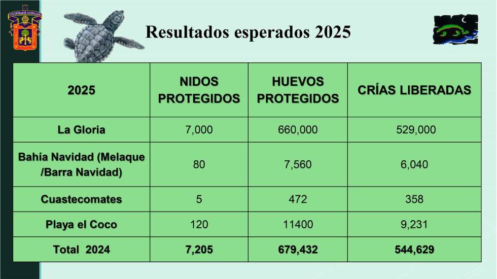 ’Estimamos que sean alrededor de 529 mil crías liberadas al mar. Para este temporal esperamos que los huracanes, deslaves y temperaturas ayuden para que sea un buen año y logremos cumplir con las estimaciones’, dijo Trejo Robles.
