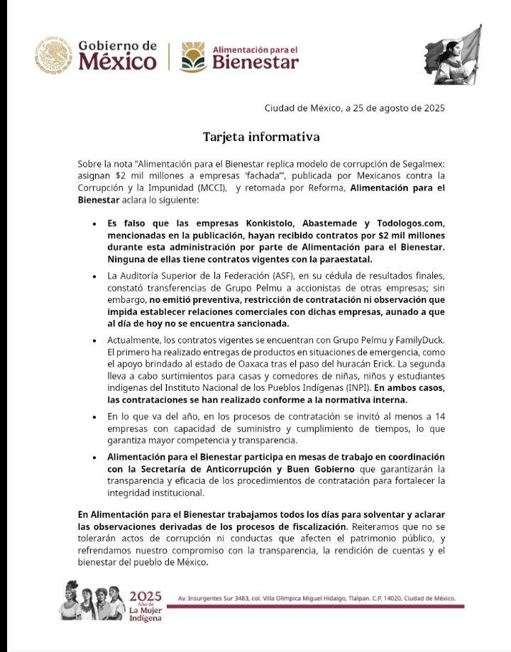 Este caso no es aislado. Es parte de una tendencia preocupante: programas sociales convertidos en botines, instituciones debilitadas y una ciudadanía cada vez más desconfiada. Si Alimentación para el Bienestar termina como Segalmex, no será por falta de advertencias, sino por exceso de complicidad.