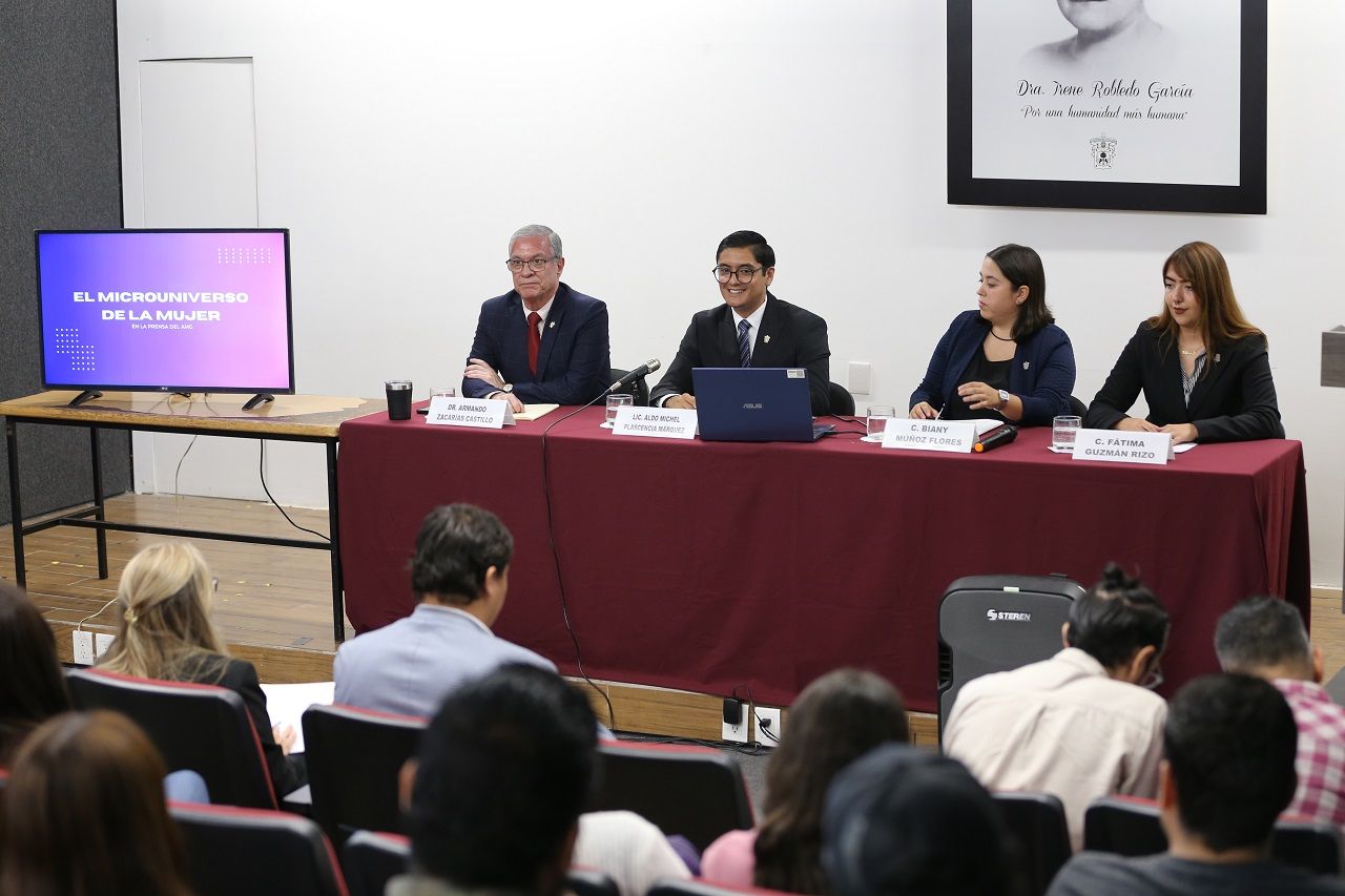 La estudiante de la licenciatura en Estudios Políticos y de Gobierno, Bianny Muñoz Flores, informó sobre el monitoreo ’El micro universo de la mujer’, que revisó 3 mil 493 notas, de las cuales 286 (8 por ciento) abordaron el tema de mujer como dato noticioso.