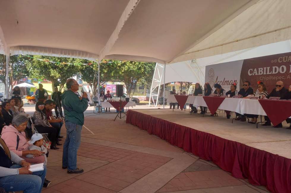 La presidenta municipal de Acolman, Blanca Guadalupe Sánchez Osorio, acompañada de los miembros del máximo órgano de gobierno, realizó la cuarta sesión de Cabildo Público Abierto en la comunidad de Chipiltepec.