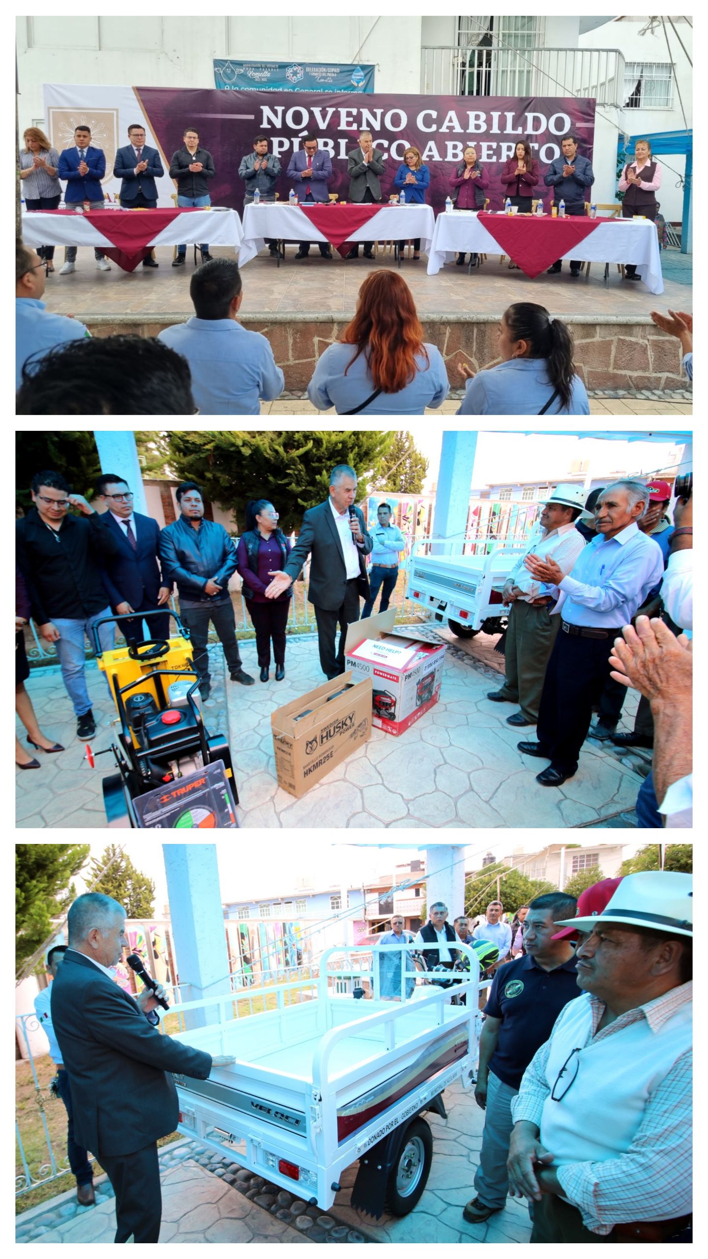 En el marco del desarrollo del Noveno Cabildo Público Abierto en la plaza cívica de San Miguel Xometla, el presidente municipal, L.C. Rigoberto Cortés Melgoza realizó la entrega de equipo al Comité de Agua Potable para que desarrollen sus actividades de la mejor manera.