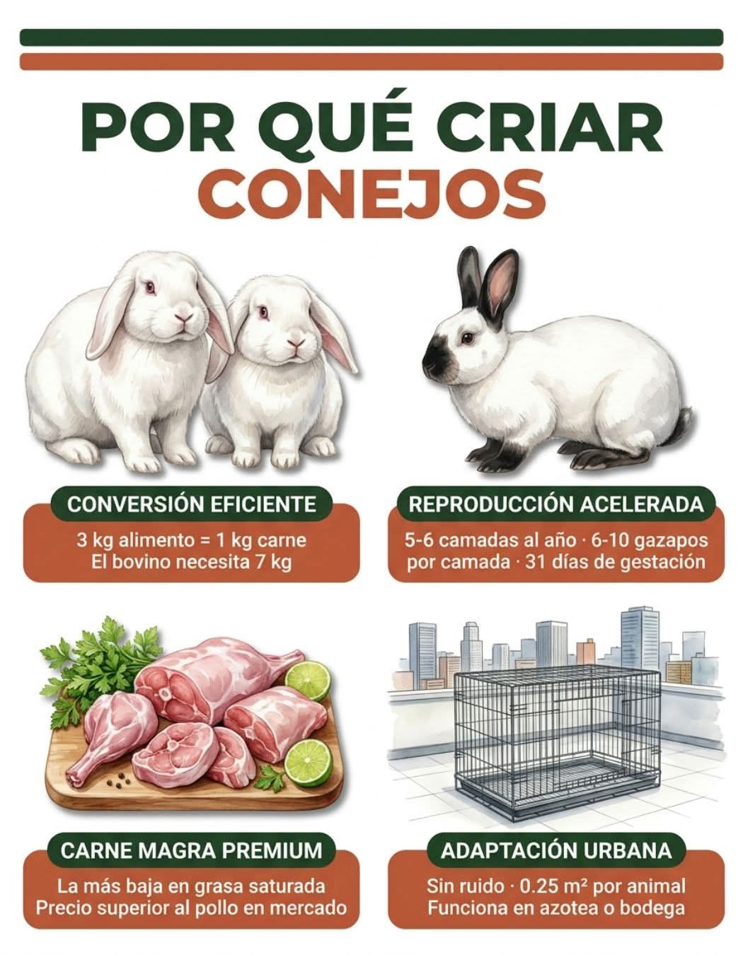 El conejo es la especie que mejor sintetiza eficiencia, silencio y adaptabilidad para el traspatio urbano mexicano. Su reproducción acelerada, su carne de alto valor nutricional y su bajo requerimiento de espacio lo convierten en la alternativa más racional para quienes buscan producir proteína animal en condiciones limitadas. En tiempos de creciente urbanización y necesidad de soberanía alimentaria, el conejo se erige como la respuesta práctica y sostenible: un pequeño animal que dignifica el espacio doméstico y multiplica la capacidad de alimentar a la familia.