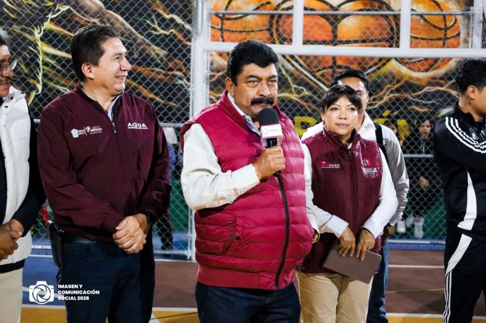 El Presidente Municipal de Texcoco que acudió acompañado de la Presidente Honoraria del Sistema Municipal para el Desarrollo Integral de la Familia (DIF) de Texcoco Yesenia Armas Tobón, por regidores y directores de área, así como autoridades auxiliares, el boxeador Enrique Vivas, así como vecinos de la localidad, quienes recibieron las nuevas instalaciones deportivas.