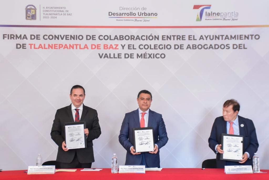 Con la finalidad de eficientar el trabajo que la Administración Municipal 2022-2024 lleva a cabo para dar continuidad a la regularización de asentamientos humanos y el ordenamiento territorial, el Alcalde Marco Antonio Rodríguez Hurtado presidió la firma del convenio de colaboración con el Colegio de Abogados del Valle de México (CAVDEM).