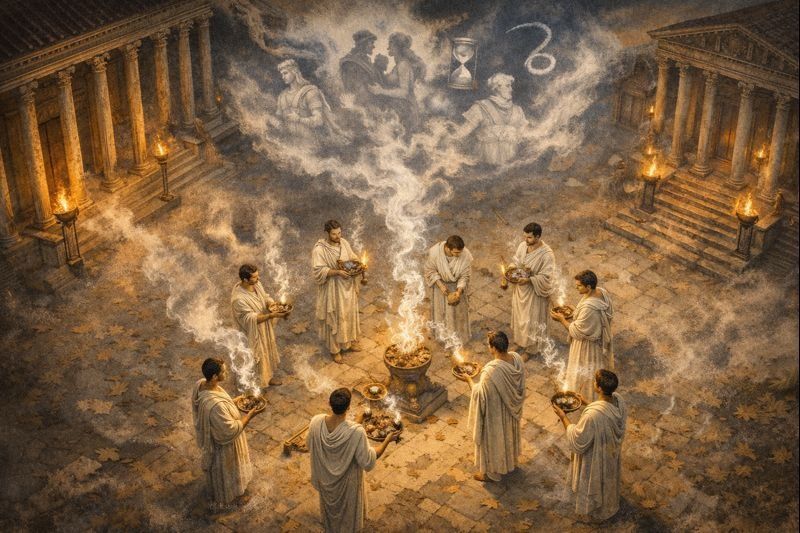 A mediados del mes se celebraban ceremonias expiatorias que marcaban el cierre simbólico del año, porque, en la antigua Roma, febrero era el último mes del calendario.