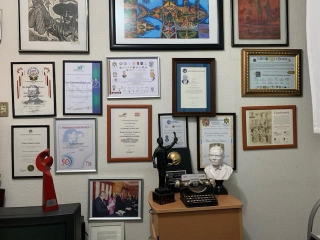 También con mucho orgullo, el Reconocimiento de nuestro ente Continental, la Federación Latinoamericana de Periodistas, FELAP, consistente en una réplica metálica artesanal de una máquina de escribir antigua, que recibimos en Buenos Aires, Argentina de nuestro presidente el camarada Juan Carlos Camaño este 5 de septiembre pasado en el marco de la Reunión del Comité Reducido de FELAP.