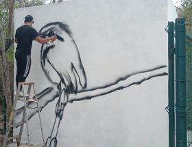 La asociación civil convocó públicamente a muralistas, grafiteros y artistas en general a contribuir con la decoración del módulo para la rehabilitación de loros y otras aves silvestres recuperadas.