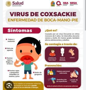 Los síntomas incluyen fiebre, dolor de garganta, llagas en la boca y erupciones en manos y pies.
